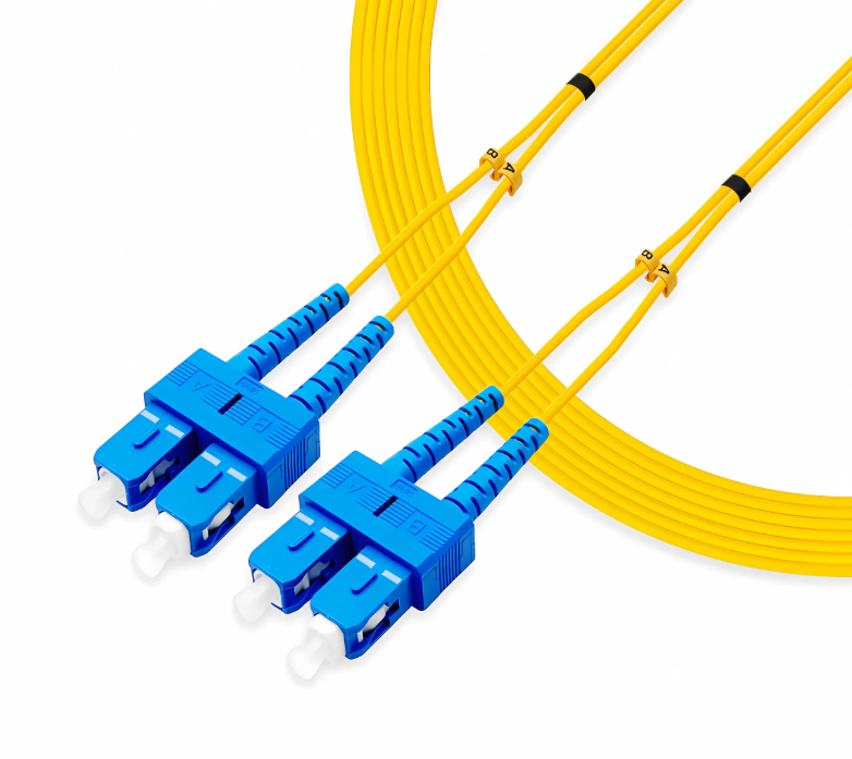 LC to SC single-mode OS2 fiber patch cable with UPC polish, low insertion loss and high return loss. Durable and stable, widely used in data centers, telecom rooms and enterprise network connections.